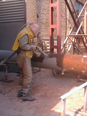 2. Пескоструйка металла от ржавчины перед покраской и газотермическим напылением, очистка до белого металла.